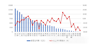 圖 7 2025 年上半年各地區(qū)建筑業(yè)企業(yè)新簽合同額及其增長情況